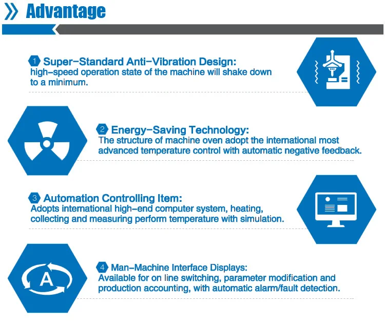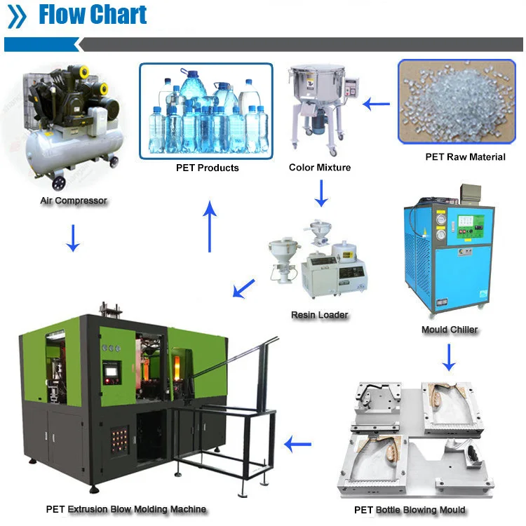 7- يمكن تخصيص أنظمة لإنتاج زجاجات بأحجام معينة. فترة تدريب قصيرة للمشغل بسبب بساطة